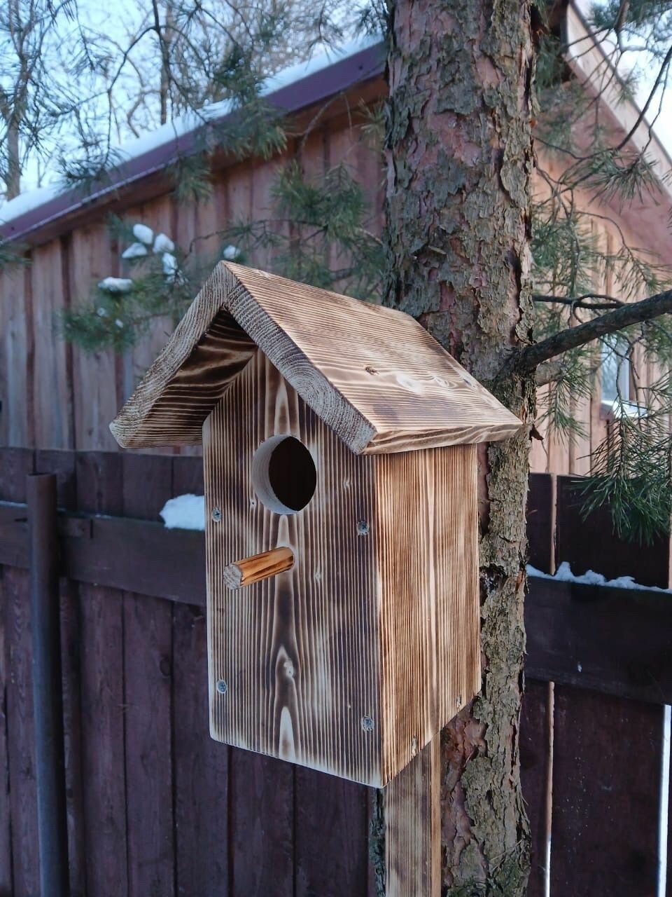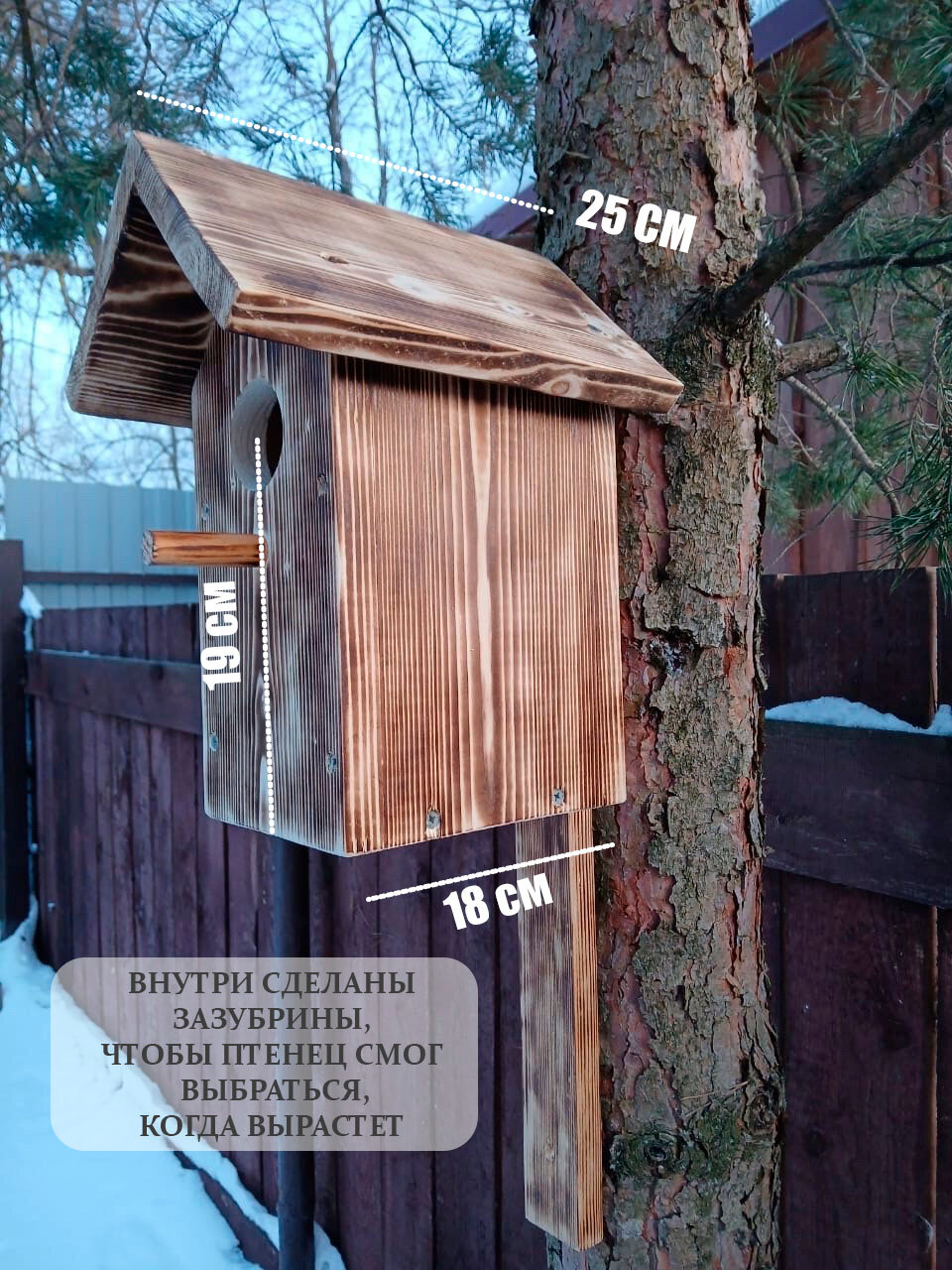 Классический скворечник ручной работы выполнен из экологически чистой древесины, которая обеспечивает надежную защиту пернатым жильцам от непогоды и хищников. Прочная конструкция прослужит долгие годы, радуя вас и ваших пернатых друзей.