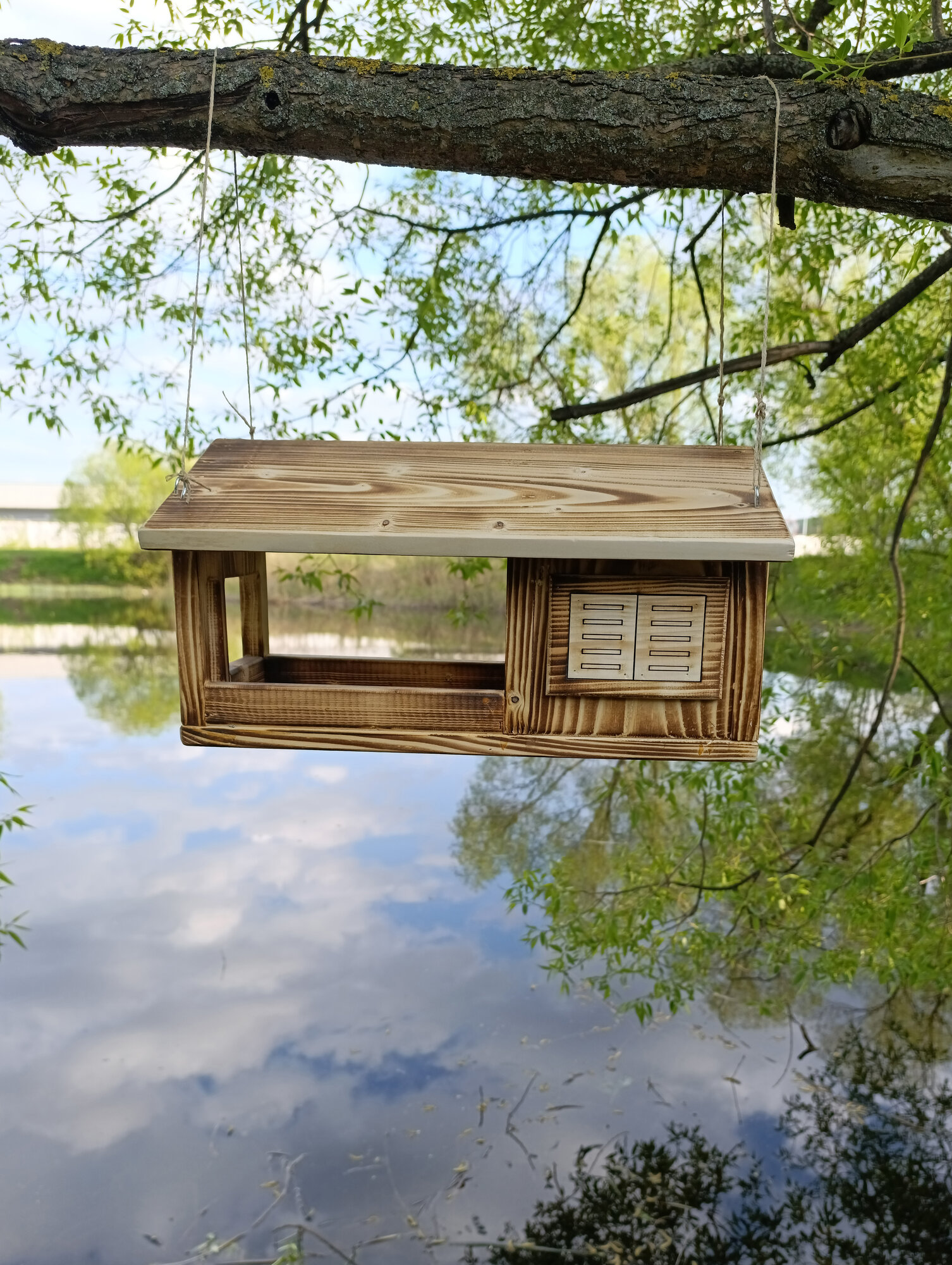 Скворечник-кормушка для птиц из натурального дерева, скворечник-кормушка для птиц из массива сосны уличный