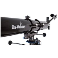 Благодаря фокусному расстоянию 900 мм телескоп способен показать множество деталей на поверхности Луны и дисках планет, а благодаря ахроматическому объективу цветовые искажения почти отсутствуют. На оптические поверхности нанесено многослойное просветление. Sky-Watcher BK 809EQ2 плавно и точно наводится на резкость при помощи металлического реечного фокусера. В комплект поставки входят окуляры 25 мм и 10 мм. Мы рекомендуем начинать наблюдения с длиннофокусным окуляром, поскольку у него более широкое поле зрения.