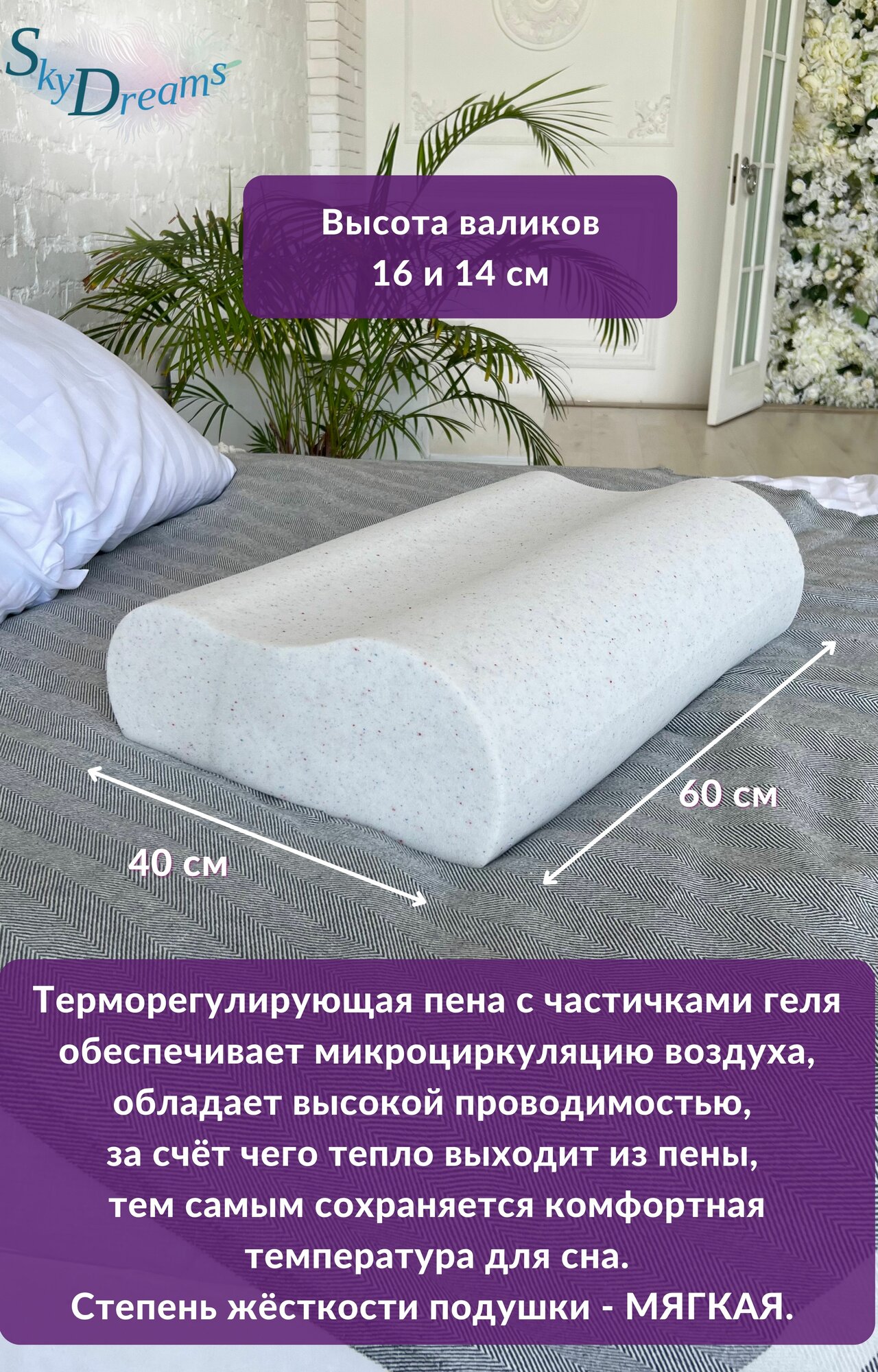 Купить SkyDreams Ортопедическая подушка с эффектом охлаждения и охлаждающей наволочкой, 60х40х16/14 см с доставкой по всей России. SkyDreams Ортопедическая подушка с эффектом охлаждения и охлаждающей наволочкой, 60х40х16/14 см: сравнение цен, характеристики, фото, актуальное наличие и цены.