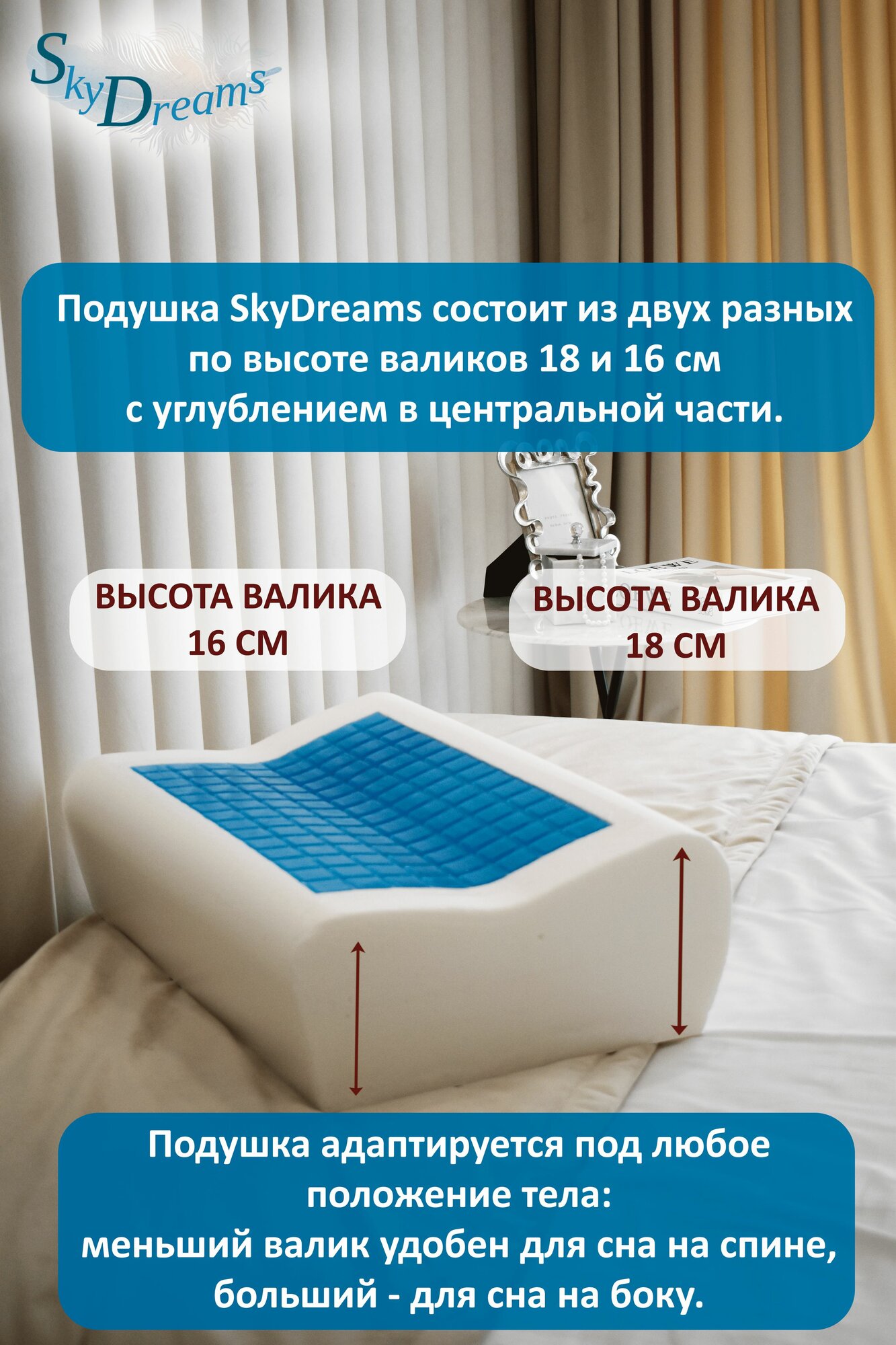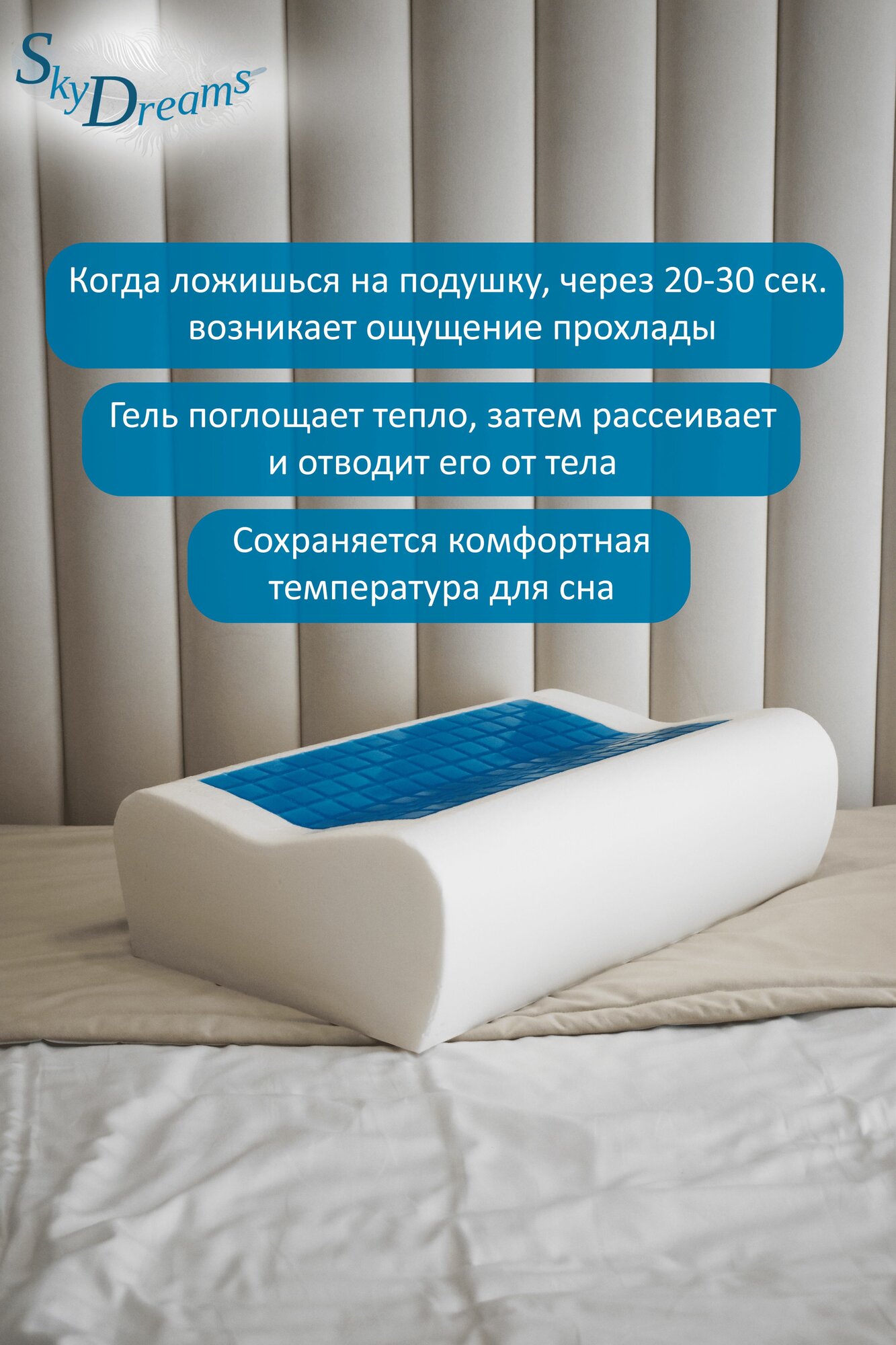 Основные преимущества ортопедических подушек SkyDreams с охлаждающим гелем: