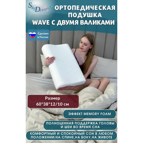 SkyDreams Ортопедическая подушка WAVE с эффектом памяти, с двумя валиками, 60х38х12/10 см, трикотаж п/э: сравнение цен, характеристики, фото, актуальное наличие и цены.