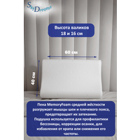 Подушка SkyDreams: Размер 60х40х16/18 см , Состав: 100% пенополиуретан Memoryfoam