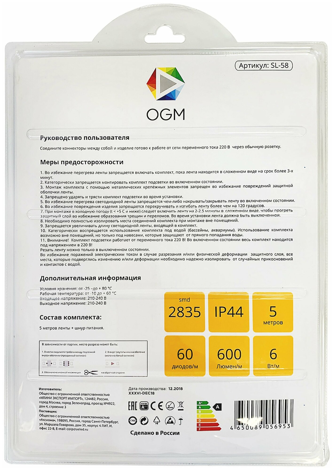 SL-58 Комплект светодиодной ленты 220В, 6Вт/м, smd2835, 60д/м, IP44, 600Лм/м, ширина подложки 10мм, 5м, т/б, 3000К, оплетка из белого ПВХ, с аксессуарами (шнур питания 220В, заглушка-1шт, крепеж-5шт.): сравнение цен, характеристики, фото, актуальное наличие и цены.