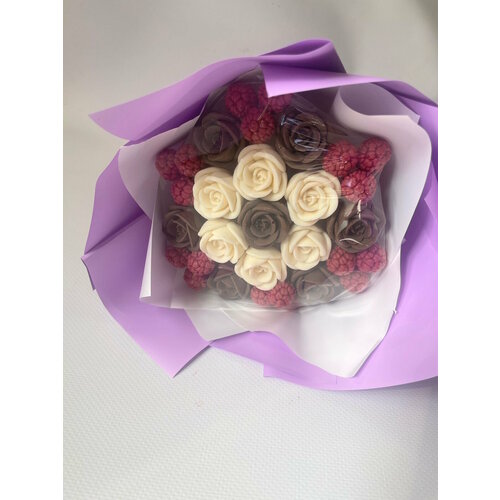 Купить Сладкий букет «ShokoTrendy», шоколад ручной работы, 13 шоколадных роз, 15 шоколадных ягод с доставкой по всей России.