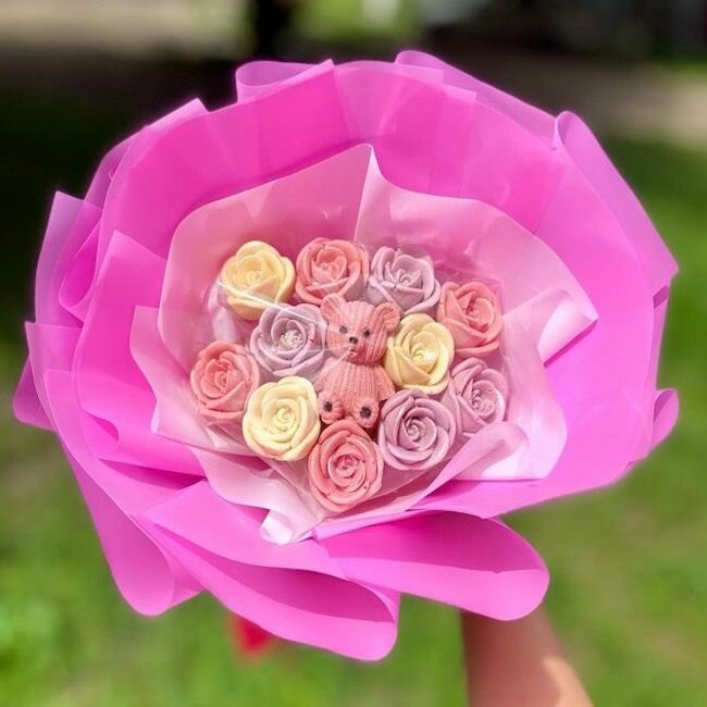 Букет из 11 шоколадных роз с мишкой ShokoTrendy - это не только вкусный, но и полезный подарок, который принесет радость и удовольствие.