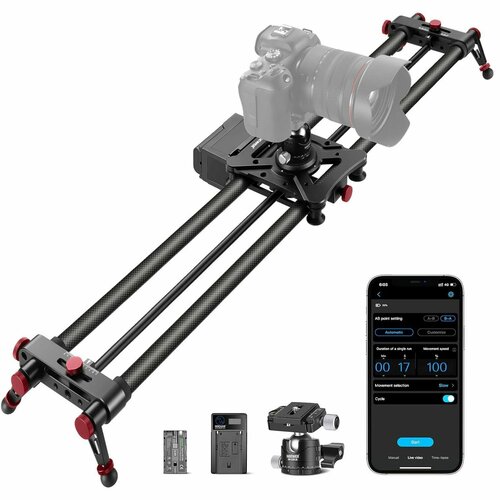 Этот слайдер для камеры длиной 39,4 дюйма/100 см автоматически перемещает камеру вперед и назад для профессиональной видеосъемки. Максимальная грузоподъемность составляет 11 фунтов/5 кг при горизонтальном расположении и 5,5 фунтов/2,5 кг при наклоне на 45°.