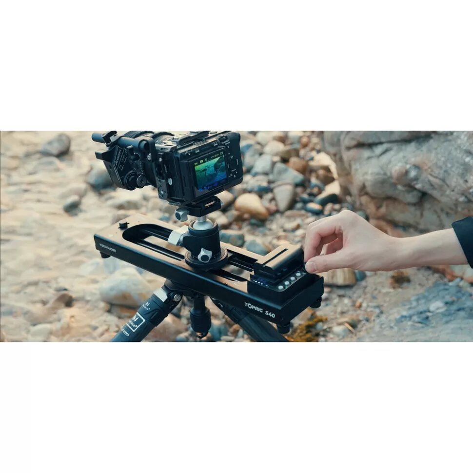 Лёгкий и компактный слайдер с мотором для съёмки потрясающих видео! Модель выдерживает до 4 кг горизонтальной нагрузки, и до 2.5 кг вертикальной, при этом старт и остановка будут очень плавными.
