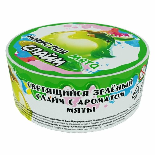 Размер упаковки: 8,65 х 8,65 х 4,2 см Функционал: тянучка-липучка Упаковка: пластиковая баночка с крышкой Страна обладатель бренда: Россия Материал: пластик, полимер, ароматизатор, краситель Комплектация: слайм - 1 шт. Вес: 260гр Возраст ребенка: от 5 лет Яркие слаймы «ФинтиФлю» развлекут как детей, так и взрослых. Особенности: - цвет: зелёный; - аромат: мята; - эффект: светится в темноте; - эластичный, тянется в разные стороны; - приятен на ощупь; - яркий цвет; - мягкая консистенция; - благодаря особому полимерному материалу может прилипать к различным поверхностям; - не оставляют следов, пятен и повреждений поверхности; - не глотать. Забавные слаймы могут стать отличным розыгрышем для детей и взрослых. Игрушки-антистресс оказывают влияние на физическое, умственное, эмоциональное развитие детей. Тактильные игрушки способствуют развитию: - речи; - зрительного восприятия; - мелкой моторики. Хранить в закрытом контейнере при t от +10 градусов.