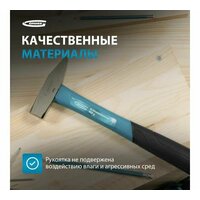 Слесарный молоток GROSS имеет боек из стали и обрезиненную фибергласовую рукоятку, которая обеспечивает надежную фиксацию инструмента в руке.