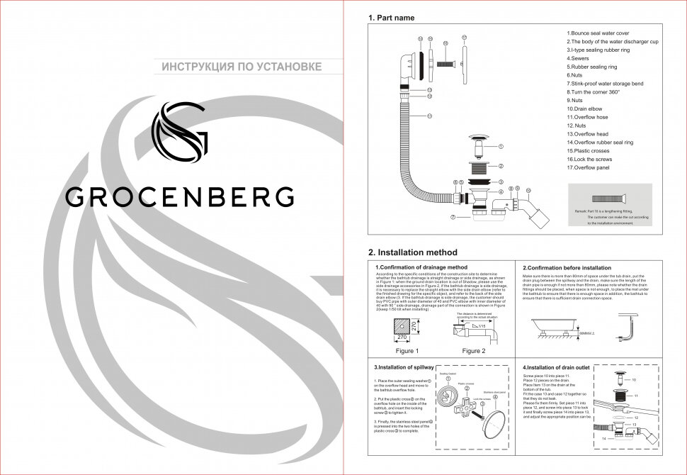 Автоматический сливы-перелив для ванны Grocenberg GB230MG Золото матовый: сравнение цен, характеристики, фото, актуальное наличие и цены.
