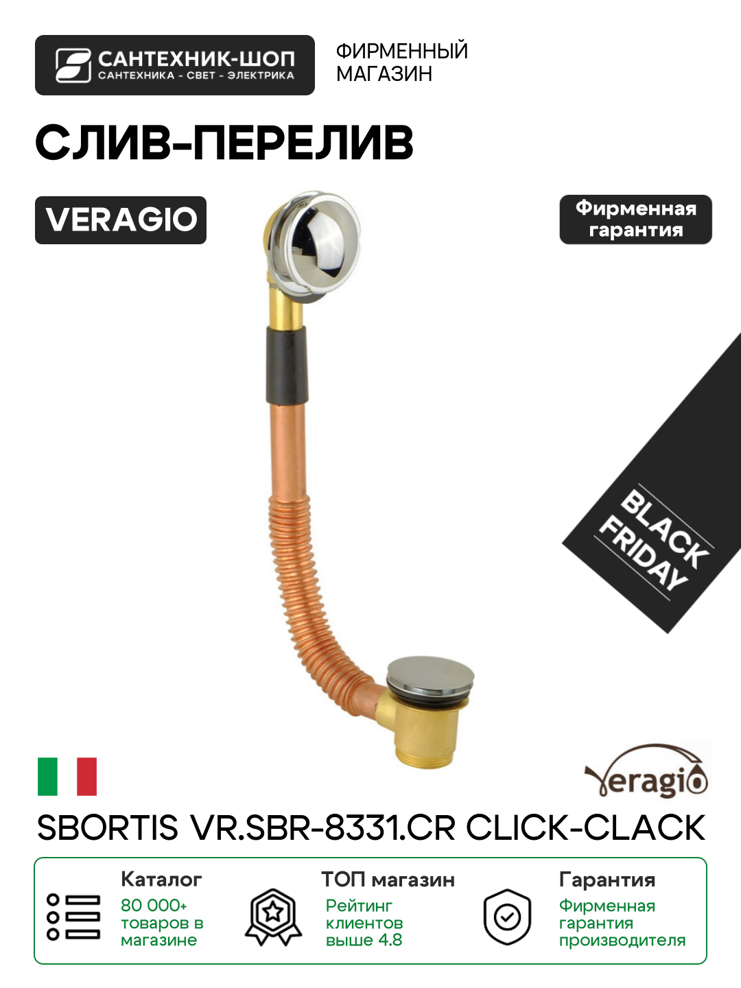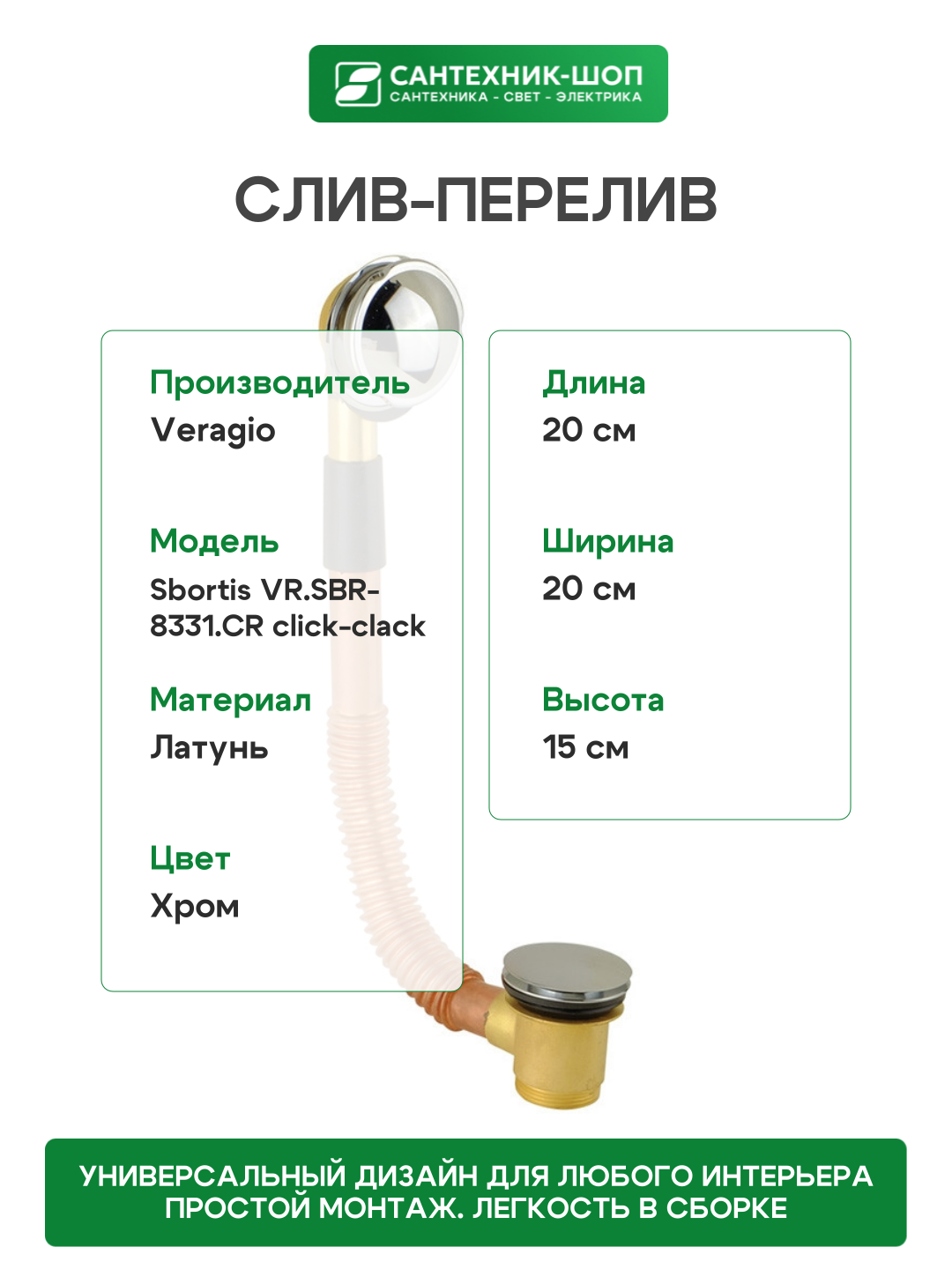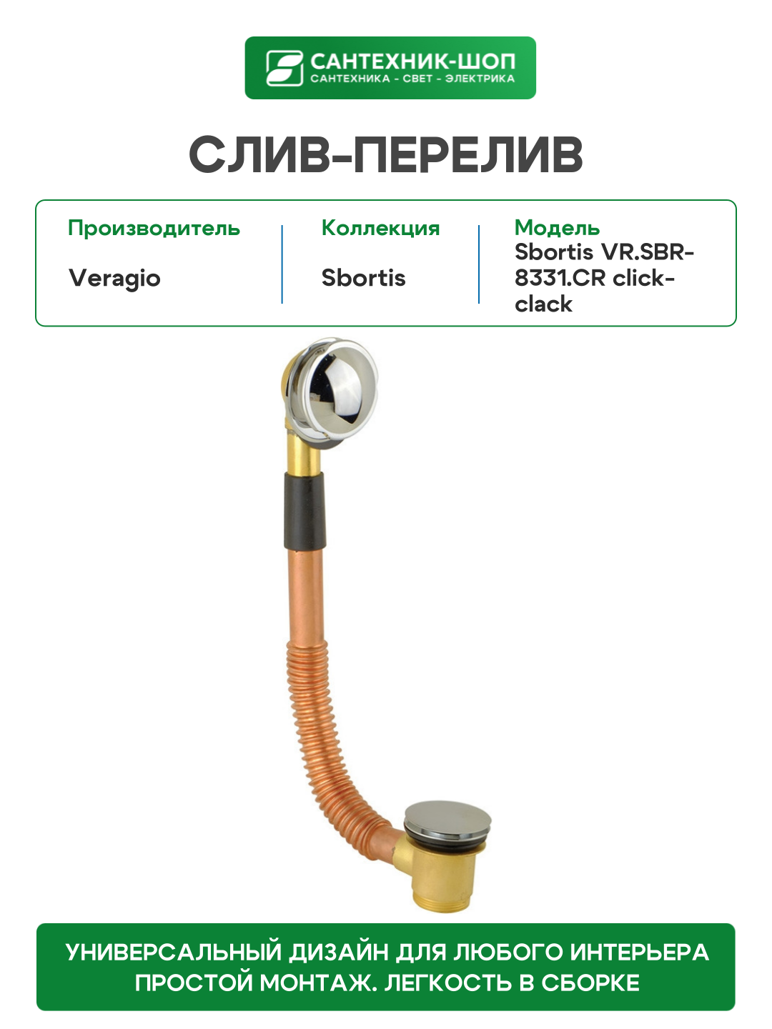 Слив-перелив для ванны Veragio Sbortis VR. SBR-8331. CR click-clack Хром латунь хром: сравнение цен, характеристики, фото, актуальное наличие и цены.