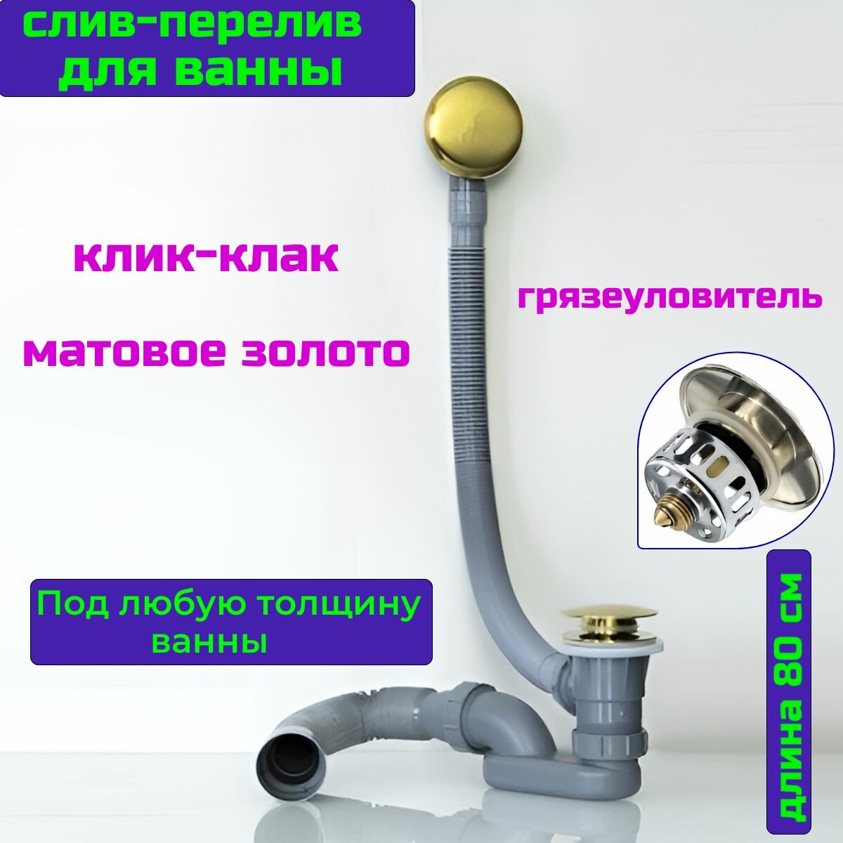 Слив-перелив для ванны золото матовое клик-клак SanNeva - это стильное и функциональное решение для вашей ванной комнаты. Изготовленный из высококачественных материалов, этот продукт сочетает в себе практичность и эстетику, делая его прекрасным дополнением к любому интерьеру.