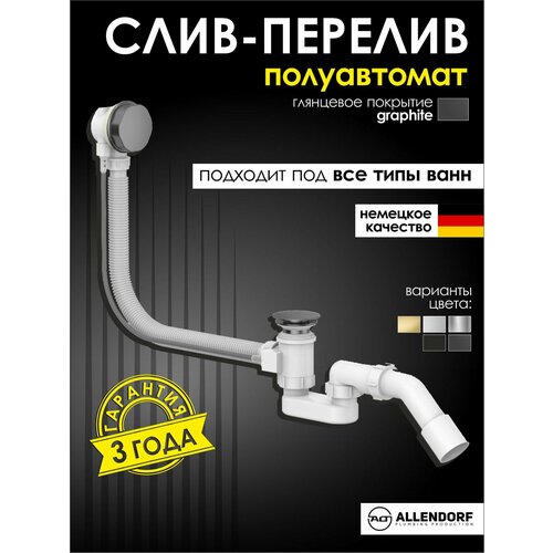 Купить Слив перелив полуавтомат ALLENDORF AD-7707 Gun Metal сифон для ванны графит с доставкой по всей России.