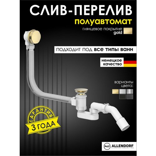 Купить Слив перелив полуавтомат ALLENDORF AD-7707 Matt Gold сифон для ванны золото матовое с доставкой по всей России.