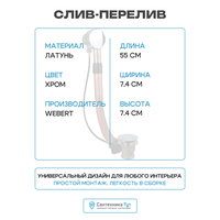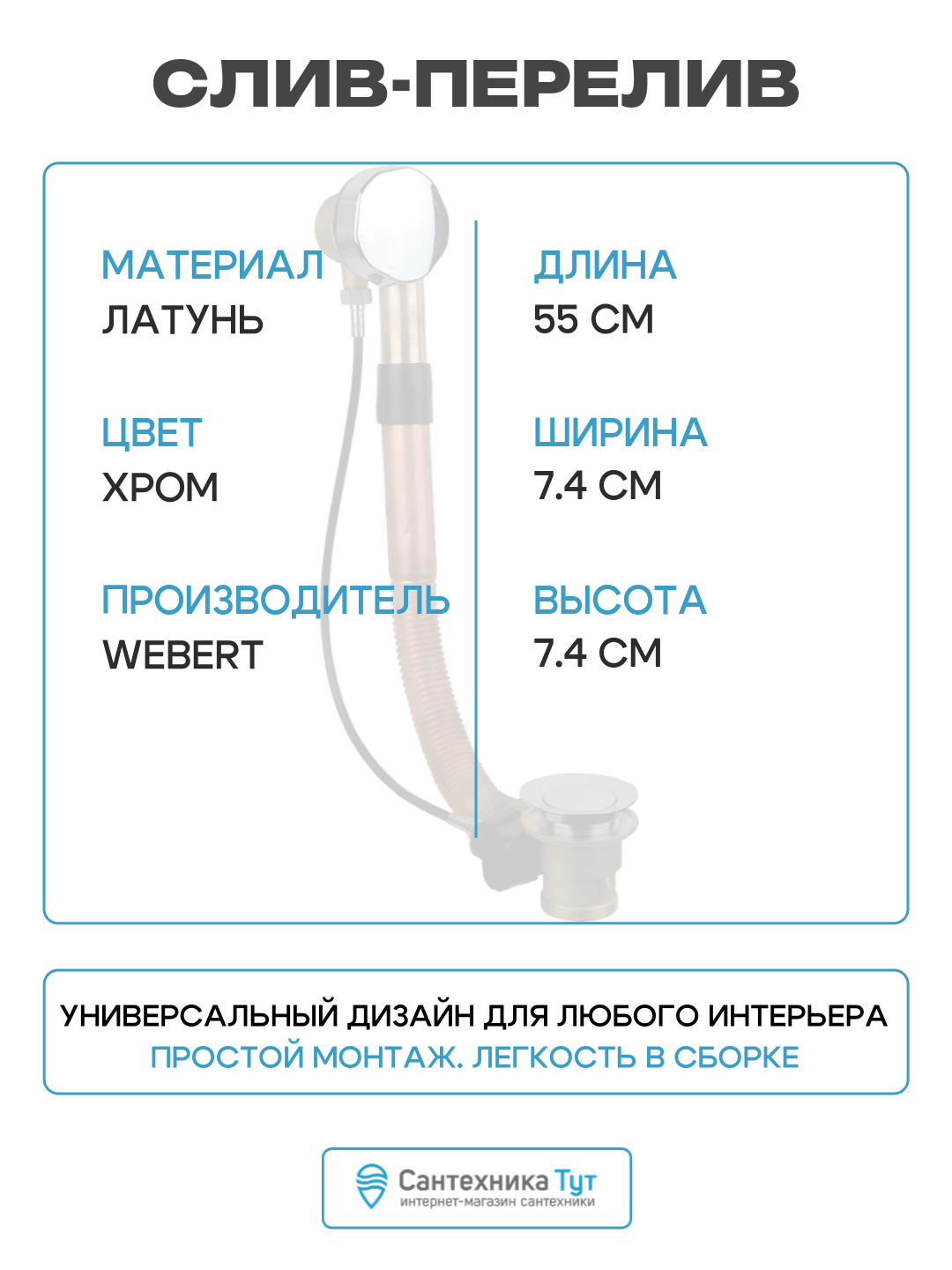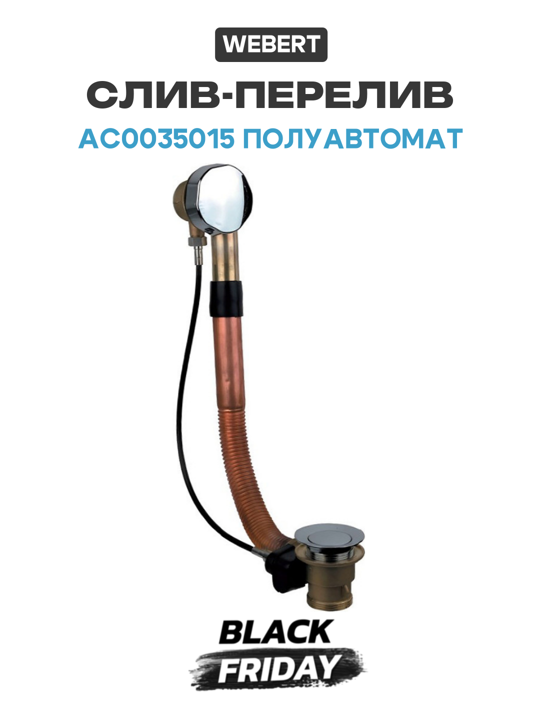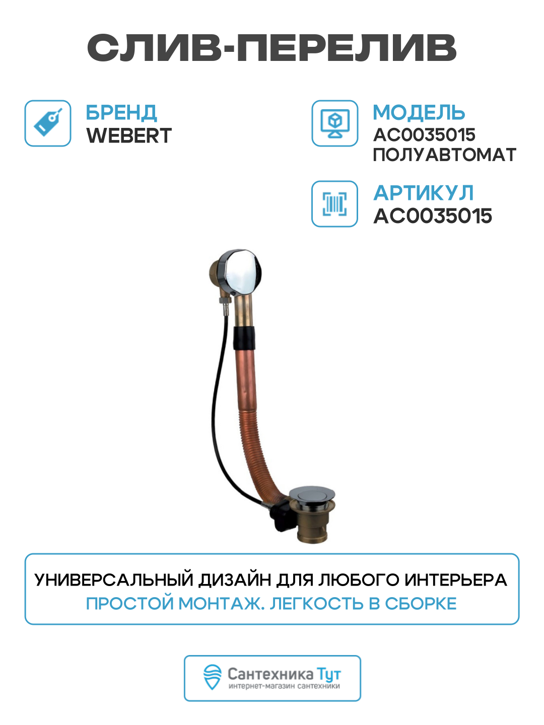 Слив-перелив Webert AC0035015 полуавтомат Хром латунь хром, современный стиль: сравнение цен, характеристики, фото, актуальное наличие и цены.