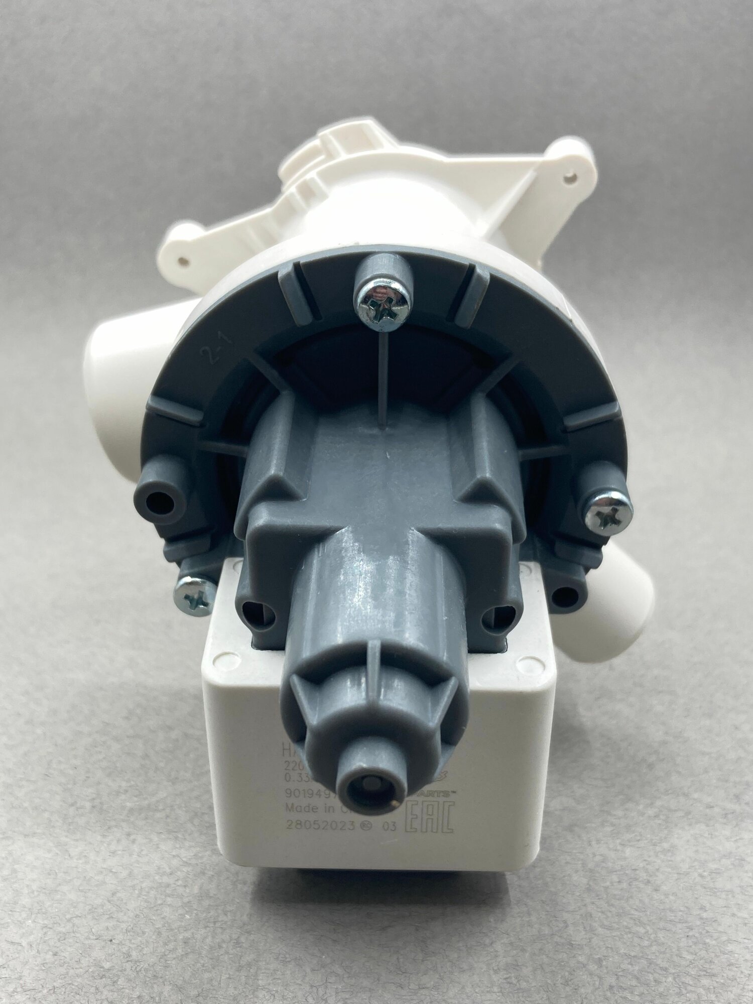 Сливной насос для стиральных машины Beko (Беко, Веко) и Blomberg (Бломберг). Сливная помпа поставляется в сборе с пластиковой улиткой и фильтром. Пластиковая улитка крепится к насосу на 3 винта. Уплотнительное кольцо используется для герметичности соединения. На улитке два отверстия. Широкое с внешним диаметром 34 мм. Внешний диаметр отверстия для сливного шланга 22 мм. Мощность насоса 30-34 w. Клеммы вперед фишка. Парт номера производителя: 2845990100, 2840940100, 2840940200, 2863200900, 2880402000, 2863201400, 2880401800, 2495200100, PMP009AC. Помпа стиральной машины обычно подбирается по оригинальному образцу. Важно обратить внимание на место подсоединения электричества. Так же обратите внимание на форму пластиковой улитки. При необходимости мы сможем проверить совместимость данной запасной части по сервисной документации. Для этого напишите нам вопрос с указанием модели стиральной машины.