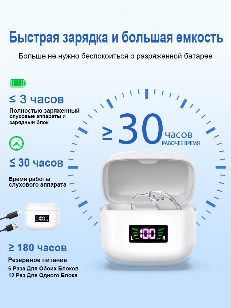 Об этом продукте: двойное шумоподавление. Благодаря недавно обновленному интеллектуальному чипу уровень шумоподавления на 30% выше, чем обычно. Это звучит более естественно и подарит вам незабываемые впечатления. Отличное качество звука и комфортное прослушивание. Подходит для людей со всеми типами потери слуха, угол наклона затычек для ушей можно регулировать, подходит как для левого, так и для правого уха. [Регулируемый режим] можно выбрать 4 типа громкости, чтобы обеспечить четкое воспроизведение звука при различной громкости. Он удобен по размеру и его легко носить с собой в любое время и в любом месте. [Перезаряжаемый слуховой аппарат] Это перезаряжаемый по USB слуховой аппарат без частой замены батареек. Слуховой аппарат полностью заряжается примерно за 2-4 часа и может использоваться в течение примерно 30 часов. Зарядного устройства хватит на 180 часов, а слуховой аппарат можно зарядить 6 раза. Положите его в небольшую коробку, которую удобно носить с собой, и выходите на улицу. Слуховые аппараты Nano для взрослых позволяют вам легко общаться с другими людьми и обеспечивают "мотивацию" к лучшей жизни. [Послепродажное обслуживание] Если у вас возникнут какие-либо проблемы при использовании наших слуховых аппаратов для взрослых, пожалуйста, не стесняйтесь обращаться к нам, мы будем рады вам помочь.