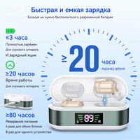 ✅[Беспроводная электромагнитная зарядка] В современных слуховых аппаратах используются беспроводные электромагнитные зарядные устройства. Слуховые аппараты помещены в стильный зарядный блок, и режим зарядки включается автоматически. Для полной зарядки требуется 3 часа, а использовать их можно в течение 20 часов. Зарядный блок рассчитан на 80 часов работы. A одной зарядки может хватить в общей сложности на 100 часов. Для тех, кто устал постоянно покупать запасные батарейки для своих слуховых аппаратов на батарейках, это хороший выбор.