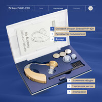 | Подробная комплектация | Слуховой аппарат Zinbest VHP-220, Сменные насадки - 3 шт., Щетка для чистки, Батарейки - 3 шт., Футляр, Руководство пользователя |