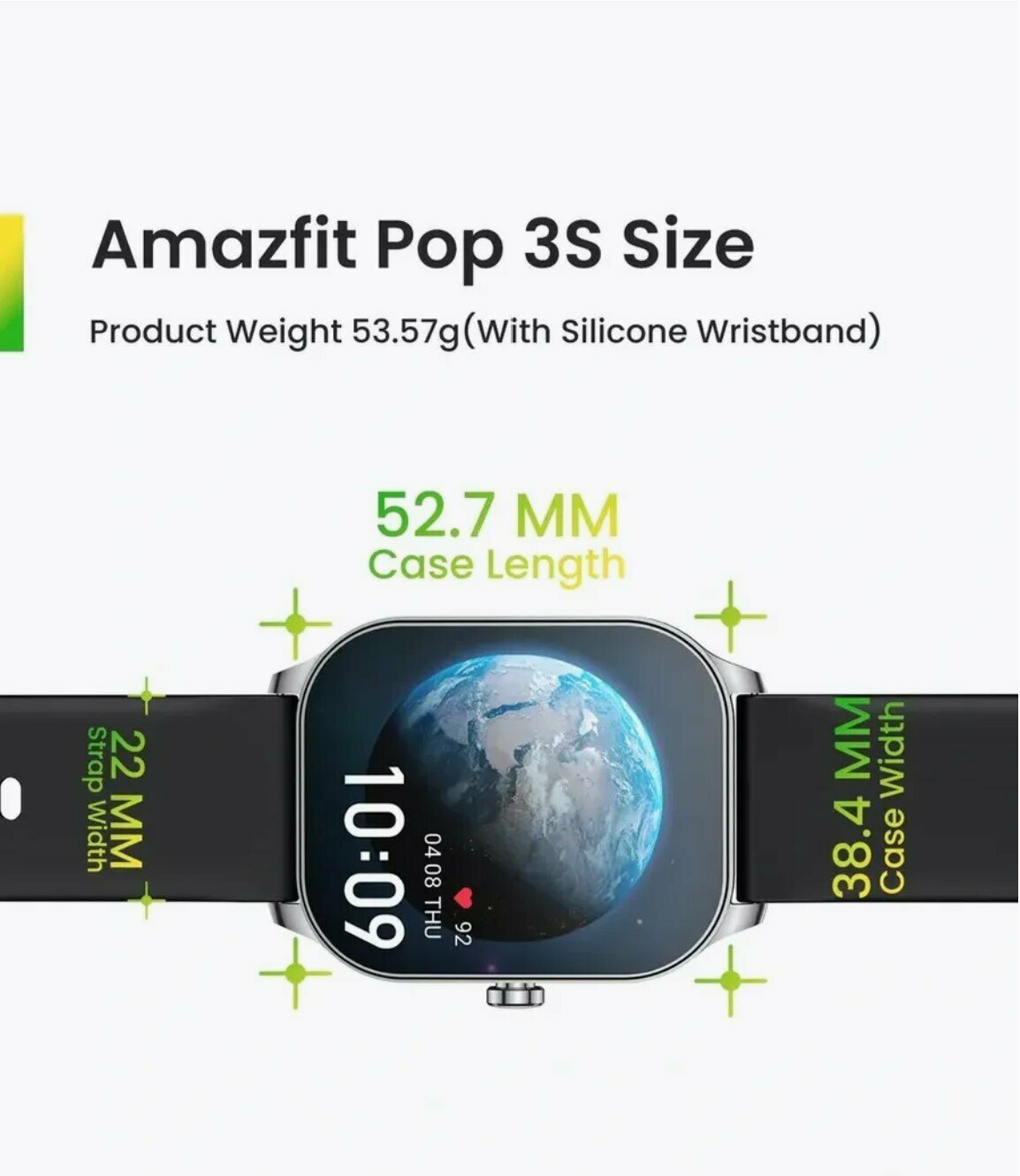 Смарт-часы Amazfit Pop 3S выполнены в стильном черном цвете и имеют вес всего 53 грамма. Материал корпуса – пластик и сталь, а ремешок изготовлен из силикона, что обеспечивает комфортное ношение на руке в течение длительного времени.