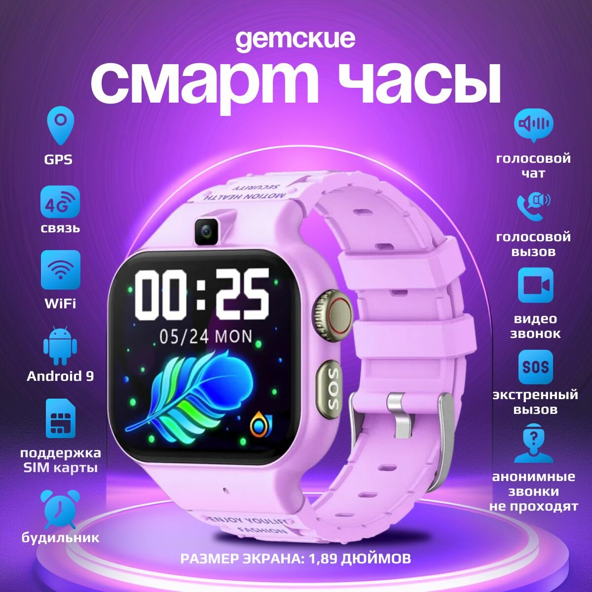 Купить Смарт часы детские Smart Baby Watch T8 4G, Wi-Fi, 4-х Ядерный процессор, экран 1,89 дюйма, с кнопкой SOS, GPS и видеозвонком (фиолетовый) с доставкой по всей России.