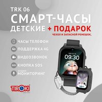 TIROKI TRK-06 с GPS, с HD видеозвонком, сим картой и 4G сотовой связью, кнопкой SOS. Часы работают на встроенной системе Android версии 4.4, имеют память ROM 192 MB, RAM 512 MB.