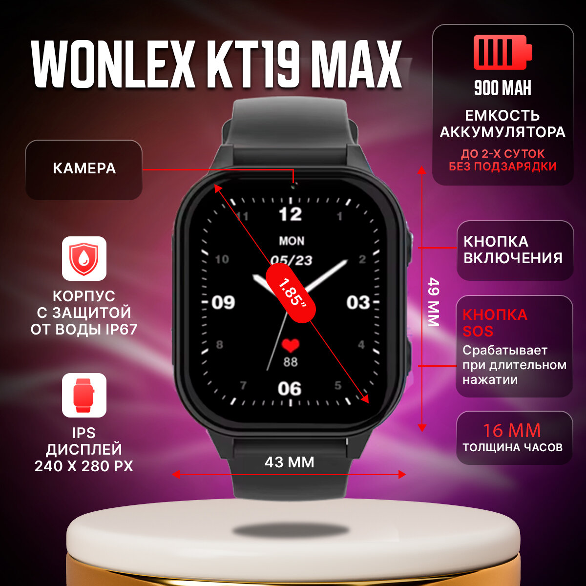 Смарт часы для детей Wonlex Smart Baby Watch KT19 PRO MAX 4G с функцией телефона, GPS, кнопкой SOS, видеозвонком. Черный: сравнение цен, характеристики, фото, актуальное наличие и цены.