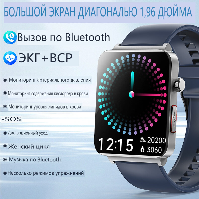 Смарт-часы, ЭКГ, анализ крови, давление, моча, температура, SOS, здоровье
