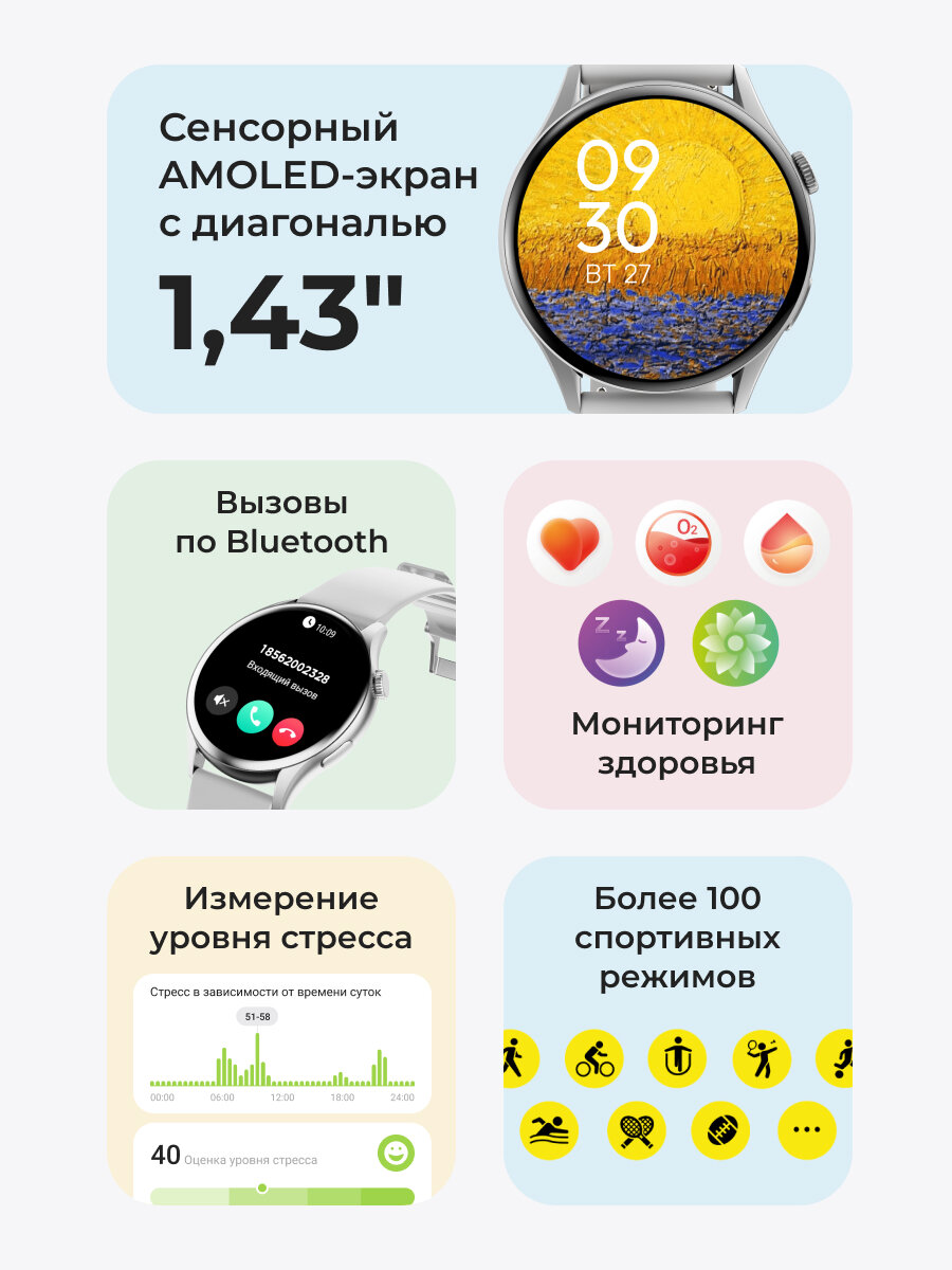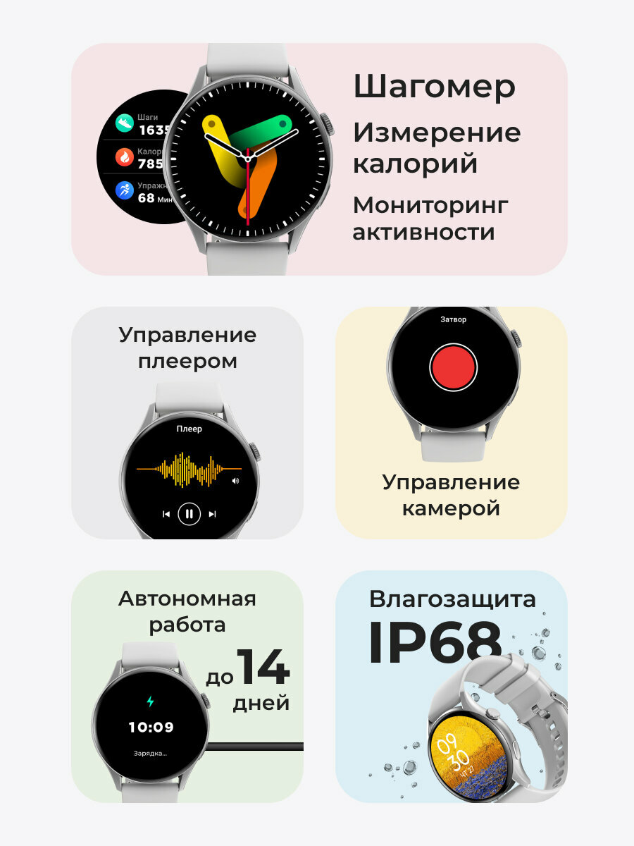 Смарт-Часы GEOZON Mode TFT, экран 1,43″, влагозащита IP68, белые, серебрянные: сравнение цен, характеристики, фото, актуальное наличие и цены.