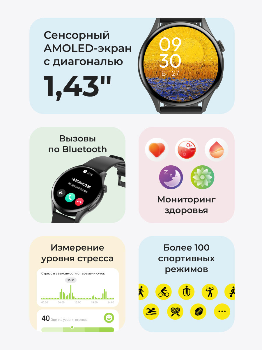 Смарт-Часы GEOZON Mode TFT, экран 1,43″, влагозащита IP68, Темно-серые, черные: сравнение цен, характеристики, фото, актуальное наличие и цены.