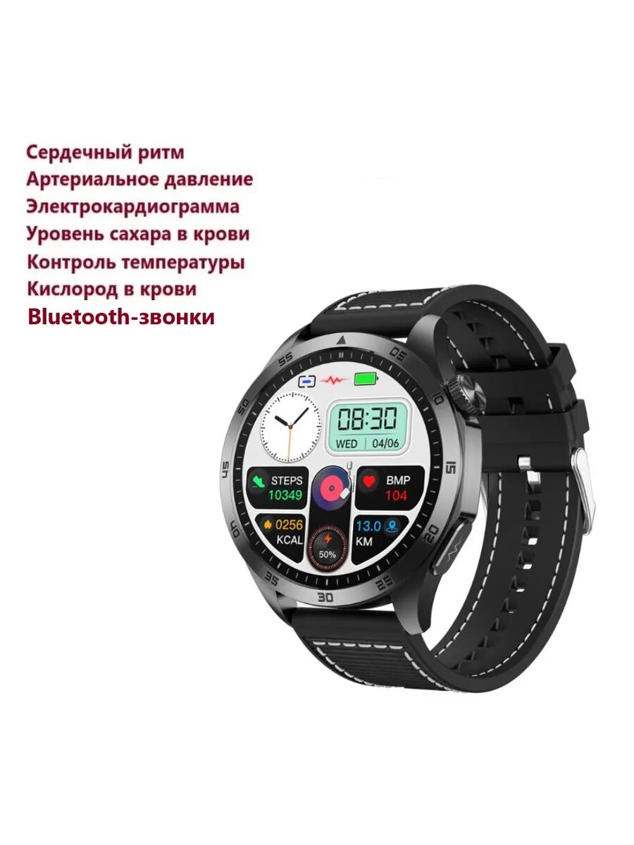 Умные часы круглые с измерением ЭКГ, температуры тела, уровень сахара в крови, липидов в крови, состав тела, мочевой кислоты, мониторинг сна;