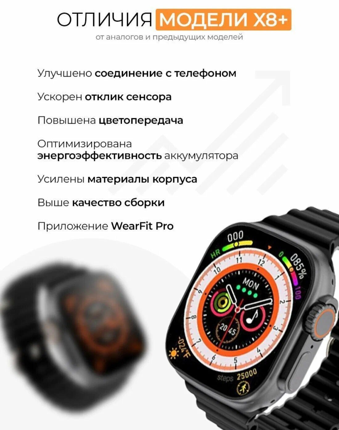 | Мониторинг | пульса, сна, температуры тела, термометр, тонометр, уровня кислорода в крови, физической активности |