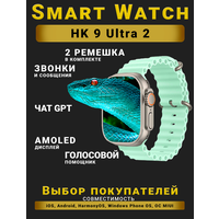 Смарт часы HK9 Ultra 2, Умные часы PREMIUM Series Smart Watch AMOLED наручные мужские и женские, iOS, Android, СhatGPT, Bluetooth Звонки, 2 ремешка, Морская волна