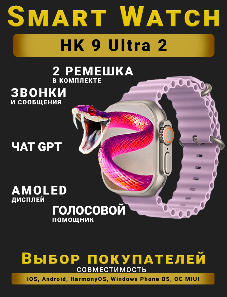 Купить Смарт часы HK9 Ultra 2, Умные часы PREMIUM Series Smart Watch AMOLED наручные мужские и женские, iOS, Android, СhatGPT, Bluetooth Звонки, 2 ремешка, Сереневый с доставкой по всей России.