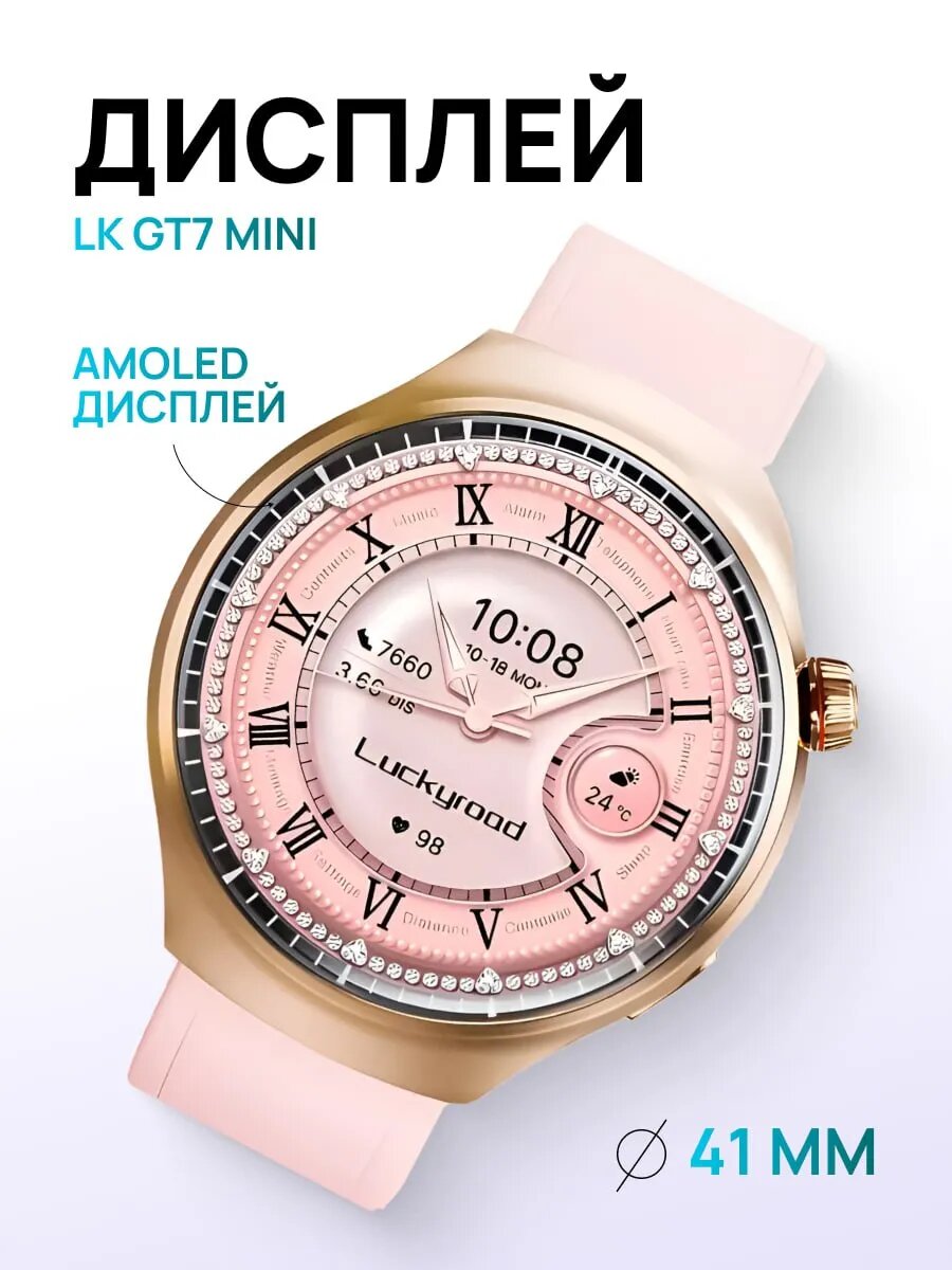 Купить Смарт-часы LK GT7 Mini, Женские, 41мм, Amoled экран, iOS, Android, 2 ремешка, Черные с доставкой по всей России.