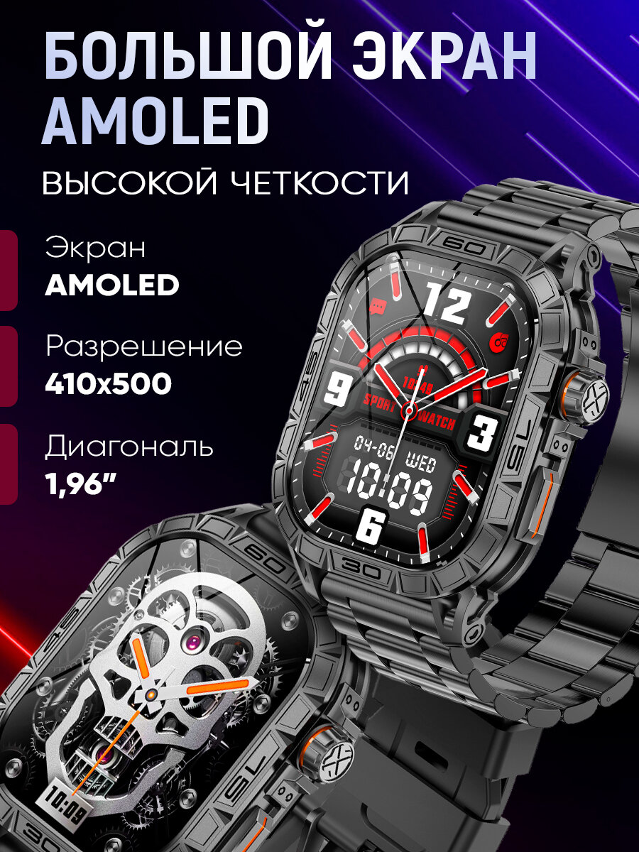 Смарт-часы Tiroki K63 — это идеальный выбор для активных людей, которые ценят качество, функциональность и стиль. Эти умные часы мужские обладают всеми необходимыми функциями для мониторинга здоровья и спортивной активности, а также обеспечивают удобную связь благодаря поддержке смарт часы с BT звонком и уведомлений. Прочный черный металлический корпус и водонепроницаемость IP68 делают их отличным выбором для экстремальных условий . Большой 1.96-дюймовый AMOLED экран с высоким разрешением обеспечивает отличное качество изображения, а мощная батарея гарантирует долгую автономную работу. Выберите Tiroki K63 для уверенности в любой ситуации!