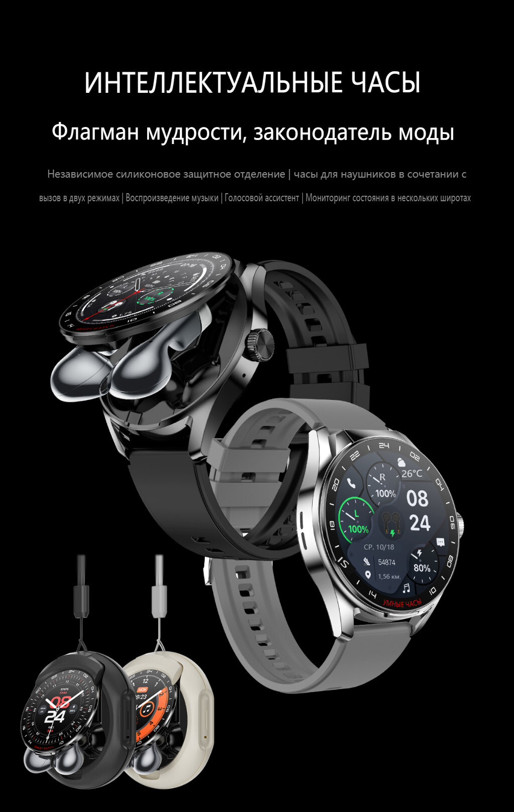 Это не только умные часы, но и беспроводные наушники TWS! Инновационная конструкция «два в одном» отвечает потребностям любых погодных сценариев и органично сочетает в себе работу, спорт и развлечения.