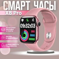 Умные часы премиальной серии Smart Watch X8 PRO На русском языке - это одни из самых продвинутых и качественных смарт-часов с беспроводной зарядкой, круглым циферблатом и большим экраном - 45 мм. Синхронизация со смартфонами на платформах Android или iOS с помощью приложения Wearfit Pro. Вы можете звонить и отвечать на звонки прямо со смарт-часов, благодаря встроенному микрофону и динамику. Для этого синхронизируйте часы с телефоном по Bluetooth и будьте всегда на связи. В отличии от аналогов, при входящих звонках на наших часах отображается не только номер, но и имя звонящего (добавить можно до 20 избранных контактов) Просматривайте сообщения и уведомления со всех известных мессенджеров. Так как умные часы наручные - они всегда под рукой. Теперь вы точно ничего не пропустите! Контроль здоровья Наручные электронные часы X8 Pro оснащены чувствительными датчиками, которые могут измерять вашу частоту сердцебиения (пульс), давление и уровень кислорода в крови. Однако напоминаем, что данный продукт не является медицинским прибором. Медицинские данные и рекомендации, представленные в нем носят исключительно ознакомительный и справочный характер и не могут быть использованы в качестве основы для диагностики или лечения. Мониторинг сна Записывайте и анализируйте свой ежедневный глубокий сон, легкий сон, бодрствование и другие различные состояния. Напоминания о малоподвижности, питьевом режиме. Управляй плейлистом, камерой и голосовым помощником. С помощью X8 Pro можно управлять плейлистом на телефоне и прослушивать свою любимую музыку прямо через сами часы благодаря встроенному динамику. Управляйте телефоном с помощью голосового помощника Siri на смарт-часах. Делайте фото на телефоне с помощью умных смарт часов по взмаху руки. Часы электронные наручные оснащены аккумулятором с большой емкостью в 220 мАч и с низким уровнем энергозатрат. Часы без подзарядки работают до 120 часов, в режиме звонка и музыки 10-22 часов. Быстрая зарядка за 2 часа восстановит полный заряд фитнес браслета. Умные часы X8 Pro обладают отличной герметичностью, водозащищенностью и пыленепроницаемостью IP67. Пот, пыль, капли дождя, брызги - не помеха. Часы имеют прочный металлический корпус, он не деформируется и комфортно прилегает к руке. Эти смарт - часы имеют съемный регулируемый ремешок - подходят как на полную руку, так и на детскую ручку.
