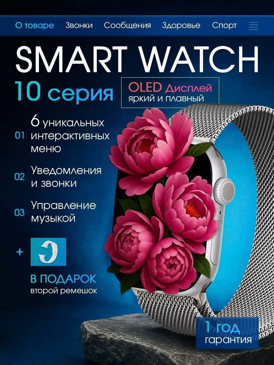Купить Смарт-часы Series 10 2025 OLED 2.01 Smart Watch, Беспроводная зарядка, 2 ремешка, Серебро с доставкой по всей России.
