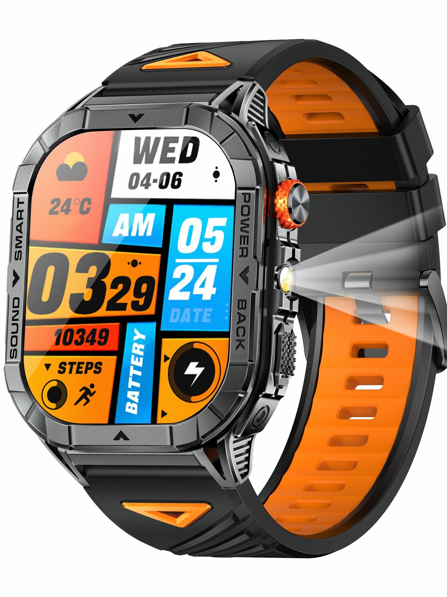 Смарт-часы Tiroki K70 мужские AMOLED 2.13″, звонки, фонарик, IP68, 100+ режимов, пульс, давление, SpO, спортивные умные часы