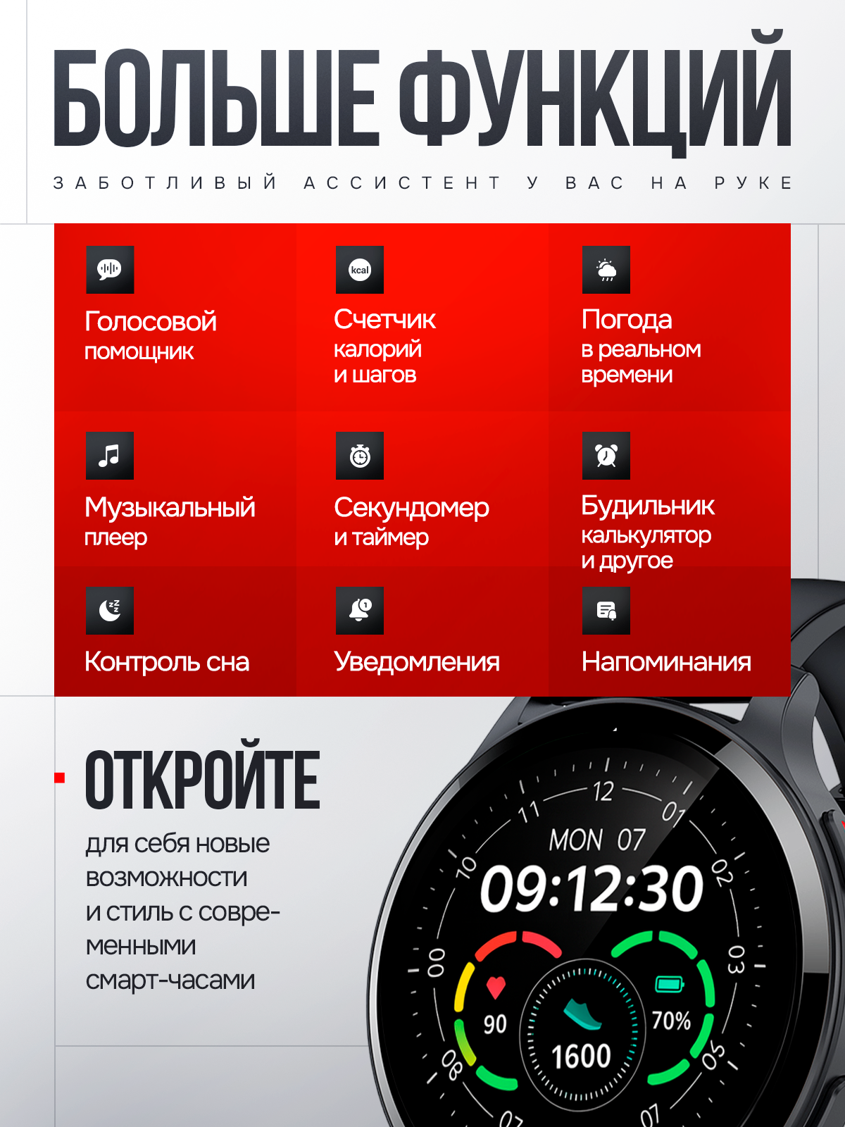 | Особенности | воспроизведение аудио, магнитная зарядка, поиск смартфона, поиск часов, фонарик |