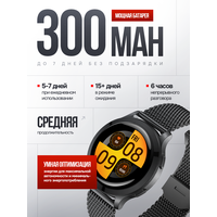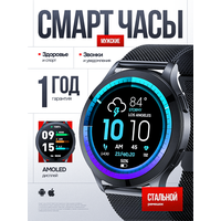 Смарт-часы умные наручные Double A Smart Watch 77 женские и мужские, круглые, водонепроницаемые, черные с металлическим ремешком