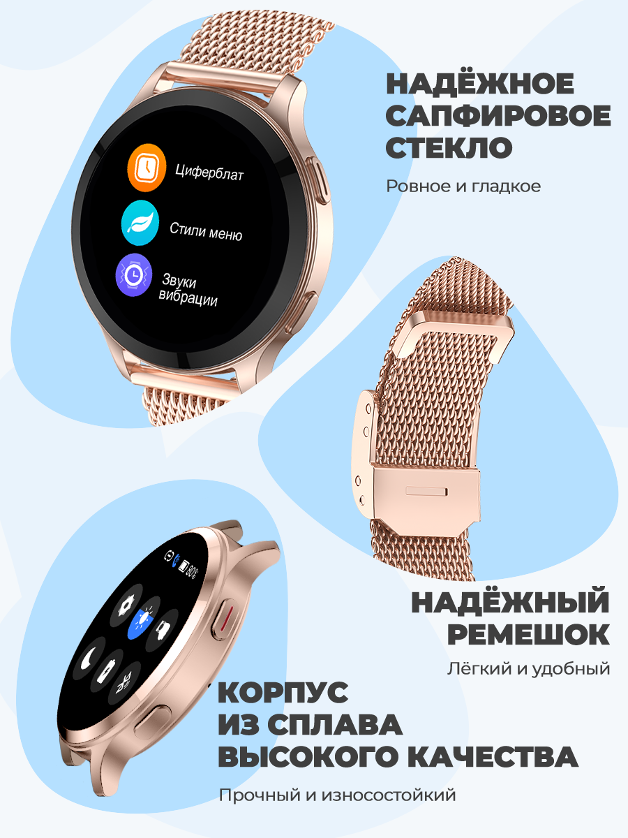 | Особенности | воспроизведение аудио, магнитная зарядка, поиск смартфона, поиск часов, фонарик |