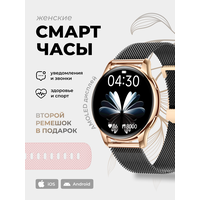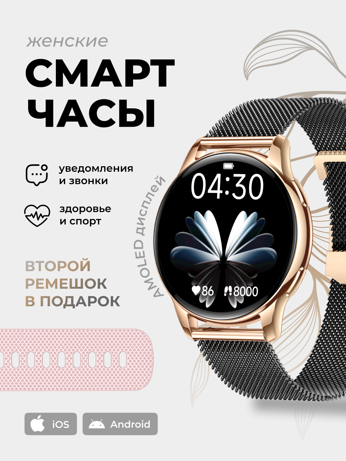 Купить Смарт-часы умные наручные Double A Smart Watch DA11 женские и мужские, круглые, водонепроницаемые, золотисто-черные с доставкой по всей России.