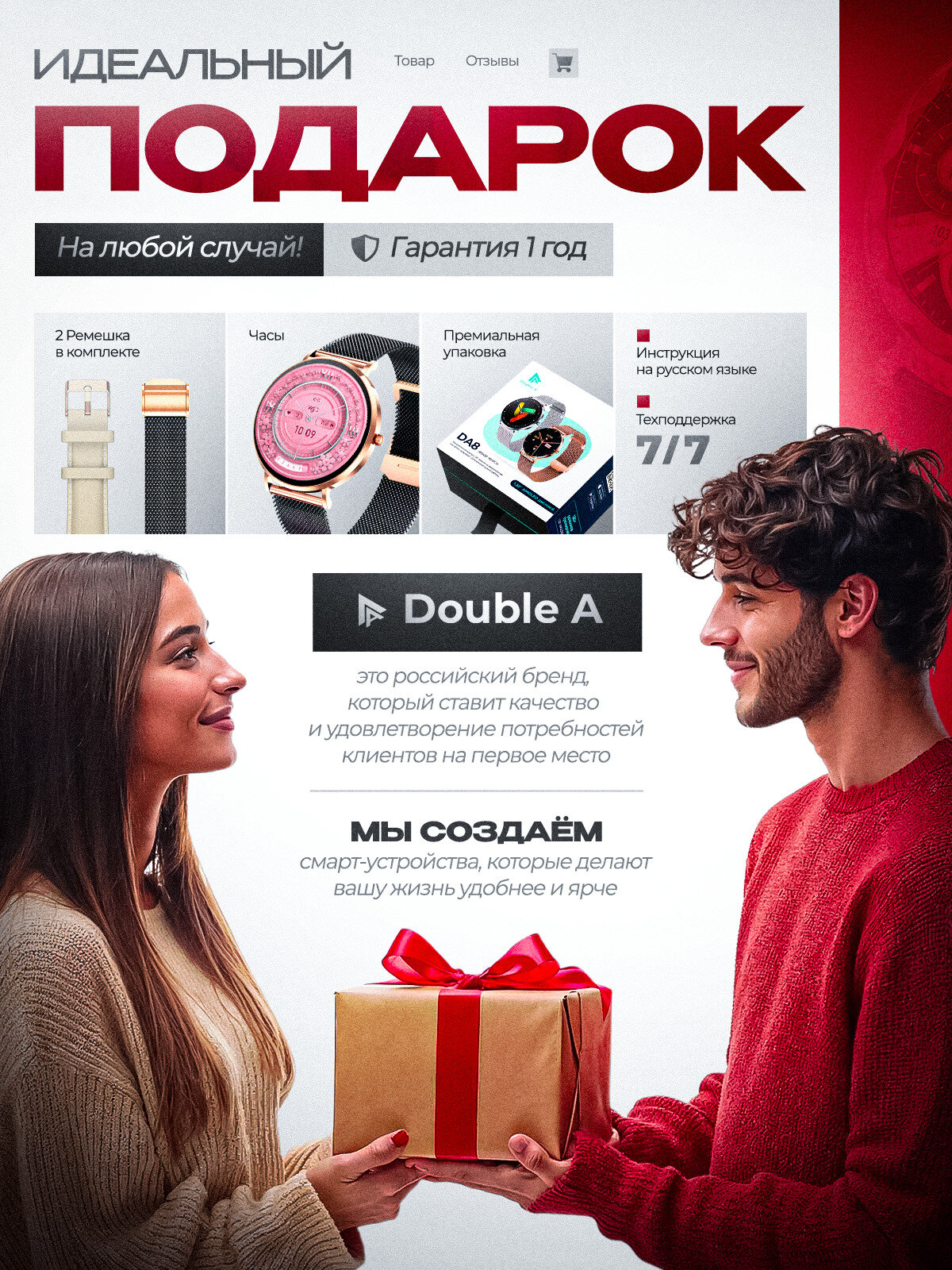 Смарт-часы Smart Watch DA8 будут отличным подарком на Новый Год, 23 февраля, 8 марта, День Рождения или любое другое событие или повод.
