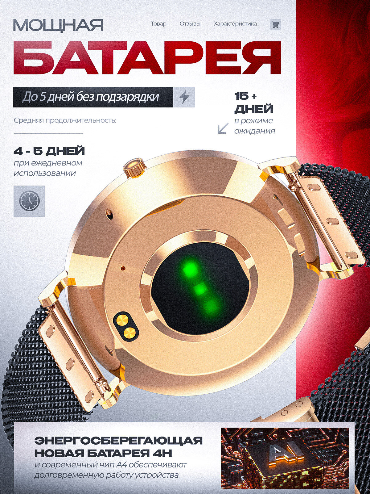 - Сменные циферблаты (возможность загрузить своё фото)