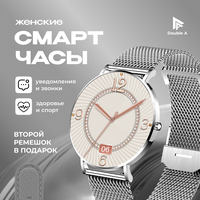 Смарт-часы наручные SMART PRESENT DA8 женские, круглые, с функцией телефона, с большим дисплеем, серебристые, металл