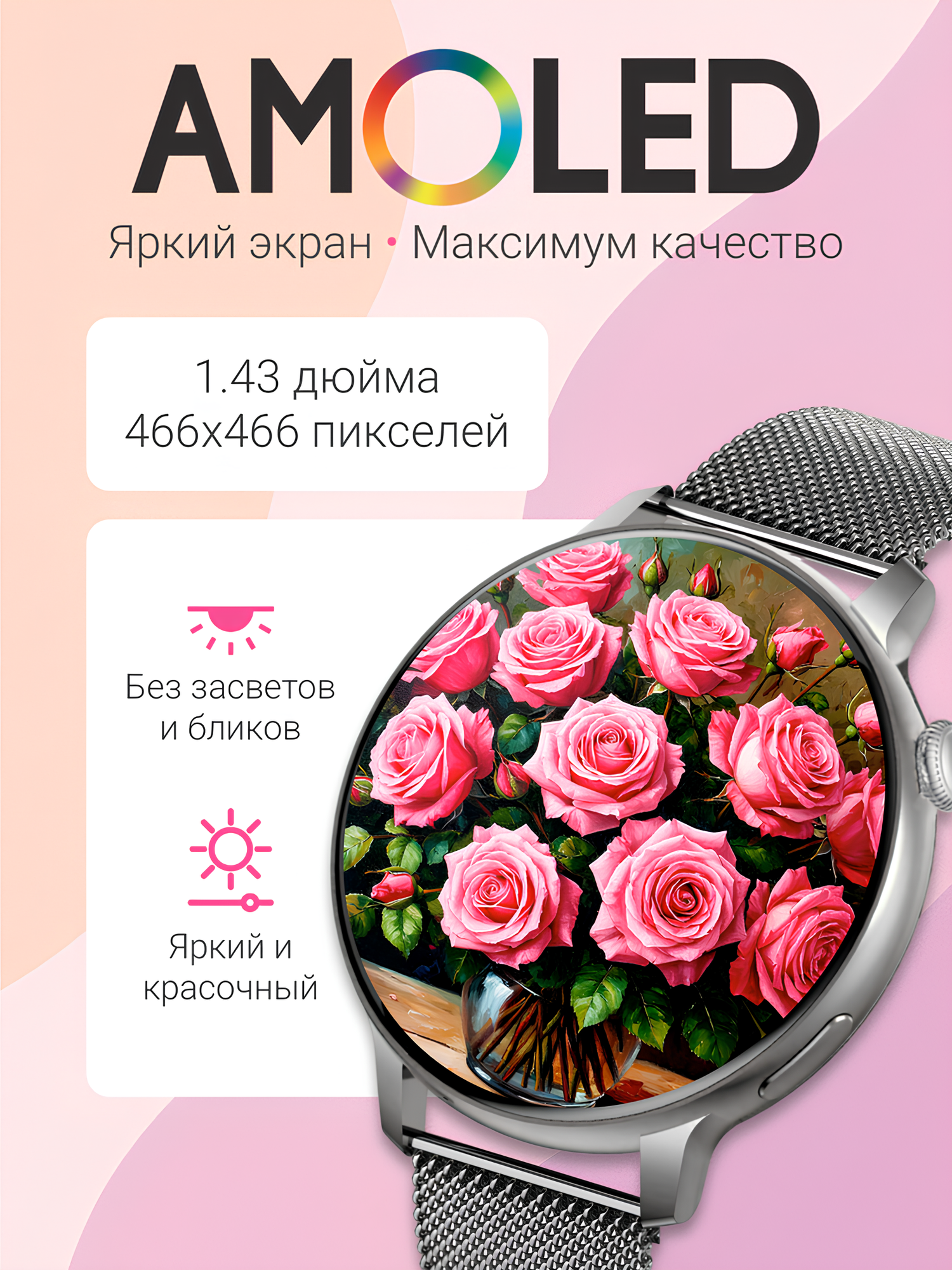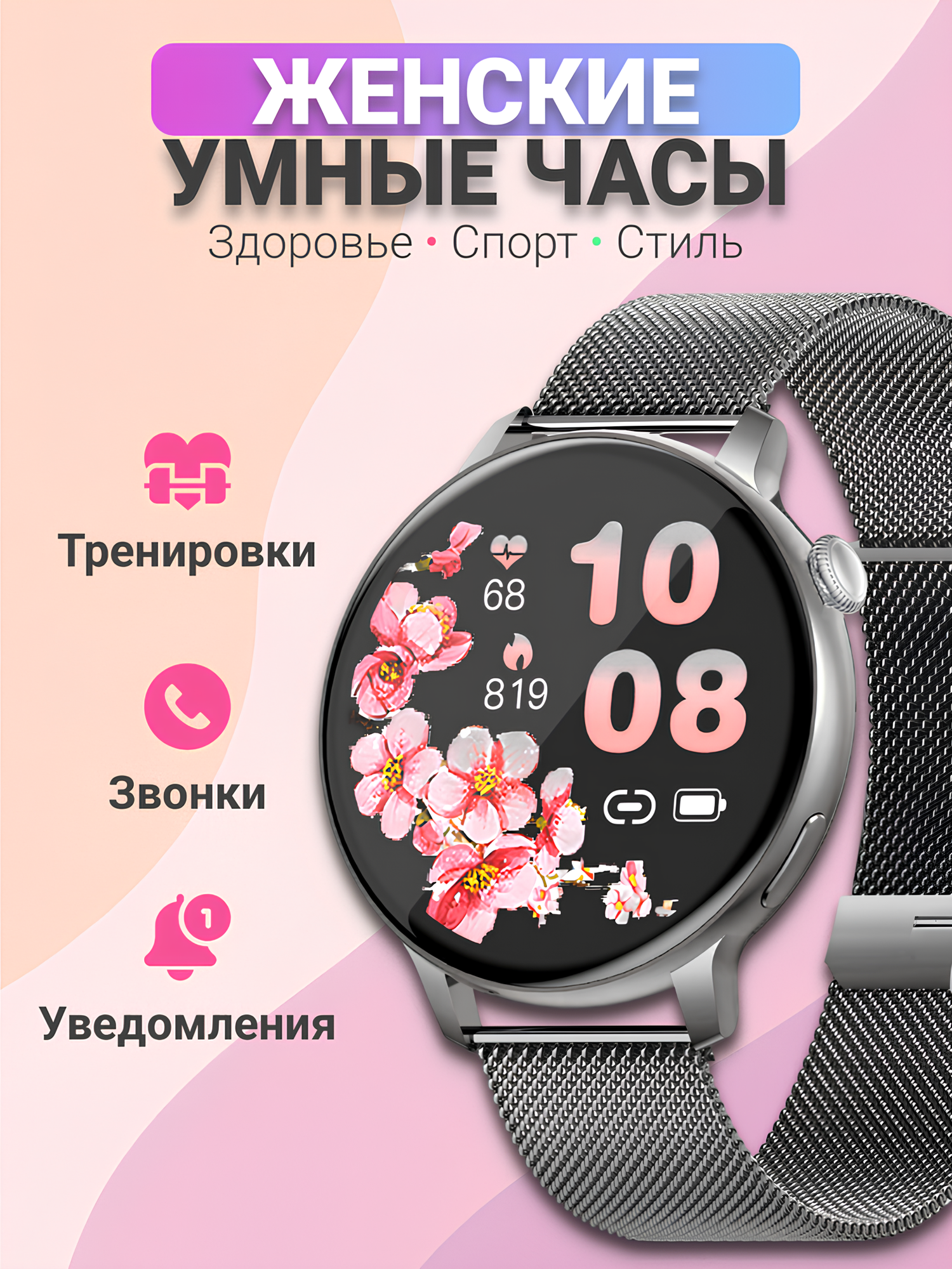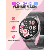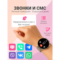 Купить Смарт часы умные женские круглые, наручные, электронные для Android и IOS, женский календарь, фитнес браслет, белые с доставкой по всей России.