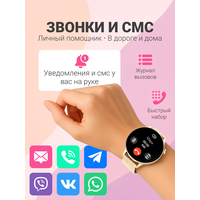 Купить Смарт часы умные женские круглые, наручные, электронные для Android и IOS, женский календарь, фитнес браслет, золотые с доставкой по всей России.